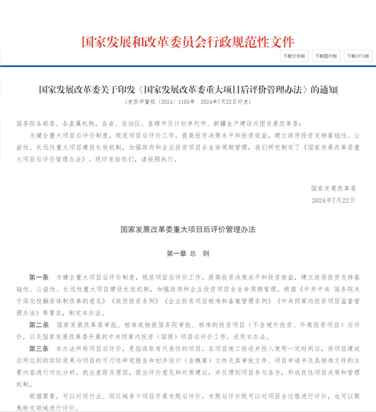 为健全重大项目后评价制度,规范项目后评价工作,提高投资决策水平和投资效益,建立政府投资支持基础性、公益性、长远性重大项目建设长效机制,加强政府和企业投资项目全生命周期管理,我们研究制定了《国家发展改革委重大项目后评价管理办法》。现印发给你们,请按照执行。