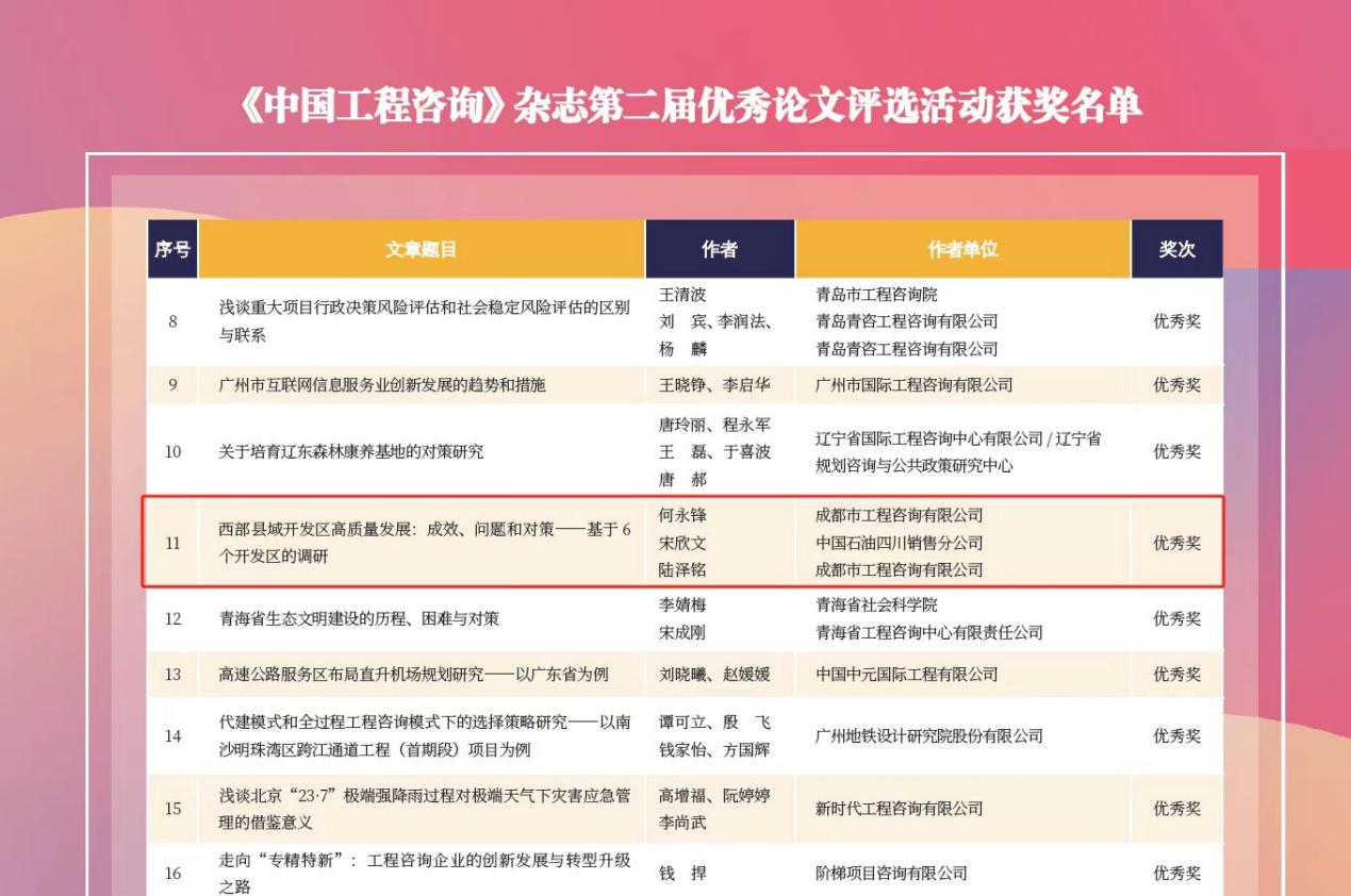 爱体育电子(中国)有限爱体育电子(中国)有限公司官网官网于1988年8月经成都市人民政府批准成立,原为成都市计划委员会下属县级事业单位,是国内首批综合甲级工程咨询单位之一。2021年爱体育电子(中国)有限爱体育电子(中国)有限公司官网官网爱体育电子(中国)有限公司官网完成转企改制,现为成都设计咨询集团旗下专业从事综合决策咨询的国有全资爱体育电子(中国)有限公司官网。爱体育电子(中国)有限公司官网成立以来,参与了四川省内一系列重大投资项目咨询服务,形成了课题研究及规划、项目咨询及评估、全过程造价咨询和项目建设管理全过程咨询业务链条和具有爱体育电子(中国)有限爱体育电子(中国)有限公司官网官网特色的咨询服务体系。爱体育电子(中国)有限公司官网始终与地方经济社会发展同成长,已成为政府和企业的综合决策参谋助手和咨询服务重要供应商。